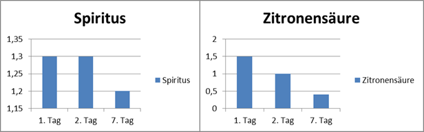 | - Die Glibberkugeln im Spiritus sind kleiner