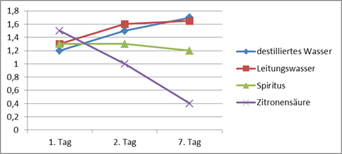 Wasser aus den Glibberkugeln. Allerdings nicht so stark wie Zitronensäure. |